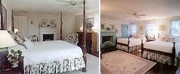 Komfortable Doppelbetten in schönen Zimmern mit traditionllem Charleston Decor. 2 große Gästezimmer mit privatem Bad und franz. Türen zum Balkon. Der Balkon ist mit Blick auf die drei Berge und den Fluß Ashley im Hintergrund.